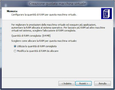Nella schermata Memoria checkate l’opzione Utilizza la quantità di RAM consigliata.