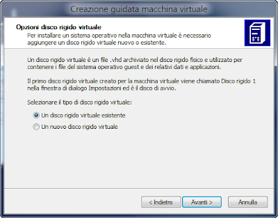 E in quella successiva selezionate Un disco rigido virtuale esistente.