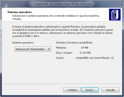 Dal menu a tendina selezionate come sistema operativo Windows NT Workstation e andate Avanti.