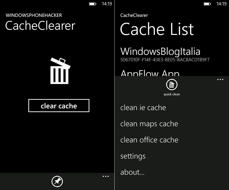L’applicazione (che potete scaricare dal link in fondo all’articolo), per poter funzionare, necessita di un terminale sbloccato e i permessi di WP7 Root Tools. Se non avete questa possibilità potete sfruttare un piccolo trucchetto anche se un po’ laborioso: basta disintallare e reinstallare l’applicazione di vostra scelta in modo da avere la cache completamente pulita e ottenere lo stesso effetto.