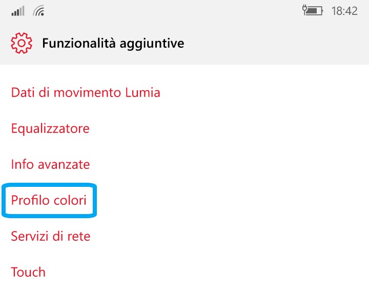 - Recatevi in Funzionalità aggiuntive > Profilo colori.