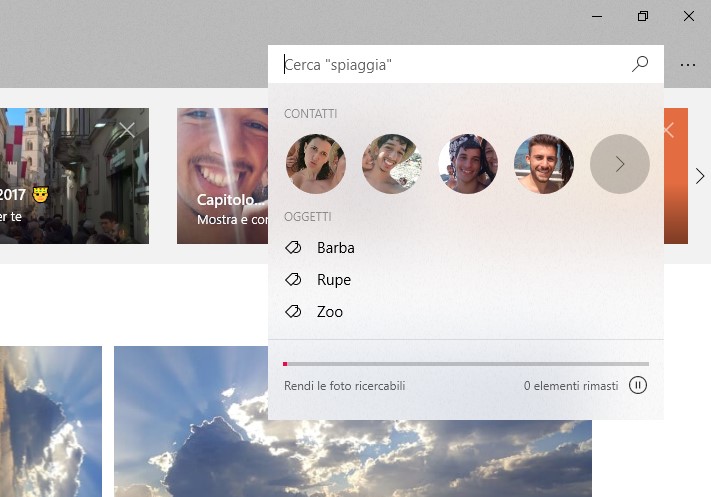 Presente nella zona superiore dell’app quando è selezionata la scheda Raccolta, è una barra che contiene diverse tile con gli album consigliati e dati interessanti. Per esempio, sarà mostrata una tile riguardante il giorno corrente che mostra tutte le fotografie scattate in questa data nei vari anni. Questa funzionalità è stata recentemente integrata con un aggiornamento dell’app anche sul canale Insider Release Preview.