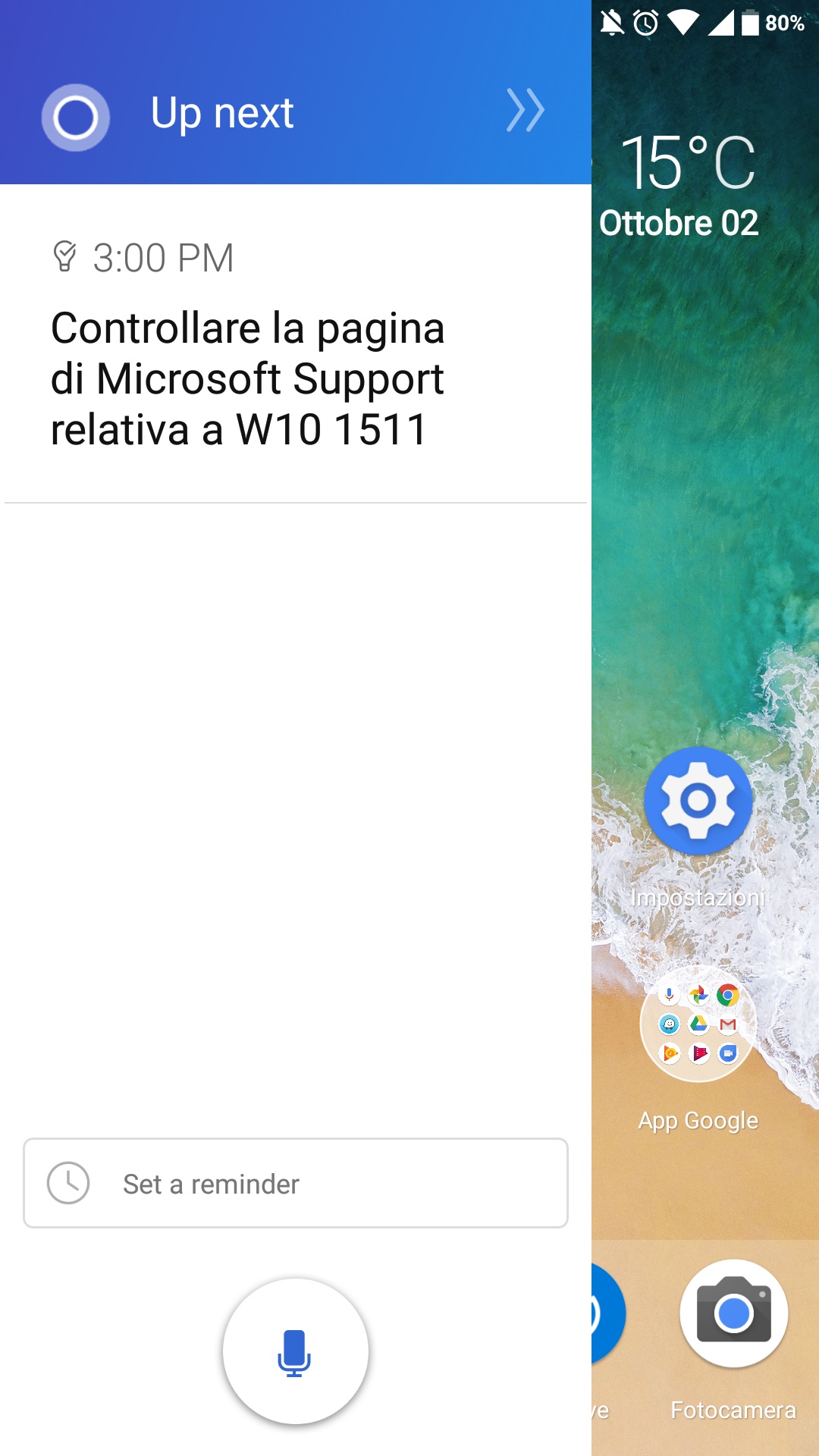 - Nuova voce nelle Impostazioni, Launcher settings: abilitando Cortana sul proprio launcher di sistema comparirà l’icona dell’assistente virtuale sulla home – cliccandola verranno mostrati i promemoria.