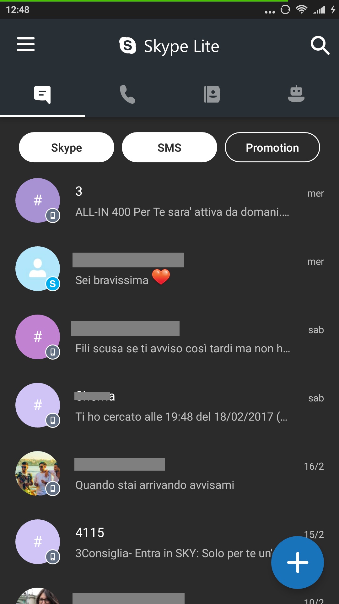 Sono stati apportati dei miglioramenti nell’apertura e nella velocità generale. Potrete anche impostare Skype Lite come app predefinita per gli SMS e visualizzarli all’interno dell’applicazione. Nella sidebar, accessibile con uno swipe verso destra, avrete sotto controllo tutti i consumi. È presente perfino il tema scuro. A seguire trovate alcuni screenshot dell’app.