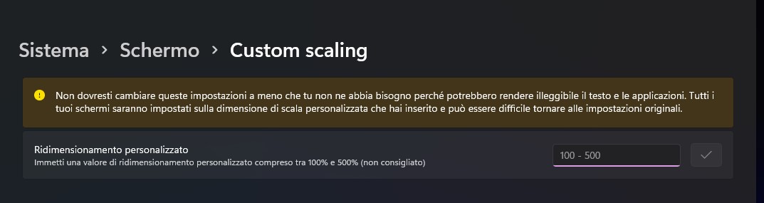 - Le impostazioni di ridimensionamento personalizzate ora ti avviseranno di non alterare il ridimensionamento.