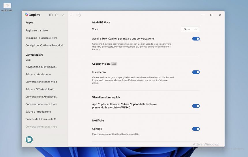 - Assicuratevi di aver attivato l’opzione nelle Impostazioni. Potete anche attivare la funzione Hey Copilot per richiamare Copilot con la voce senza dover accedere all’app.