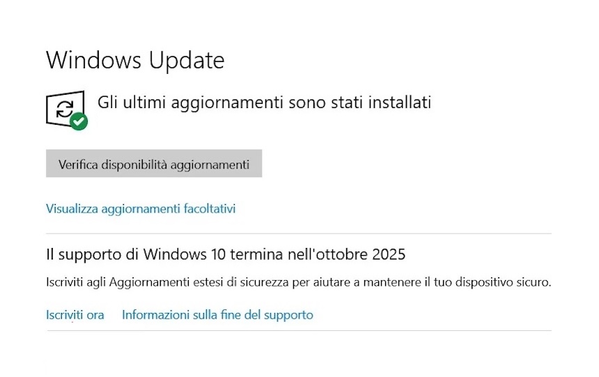 18 AGOSTO 2025 | Oltre alla procedura standard spiegata nell’articolo grazie ad un piccolo script è possibile automatizzare tutta la procedura dell’iscrizione al programma ESU di Windows 10. Questa procedura è indicata per chi ancora non riesce a visualizzare l’opzione di Registrazione al programma ESU – trovate la guida con il download e maggiori dettagli a questo indirizzo.