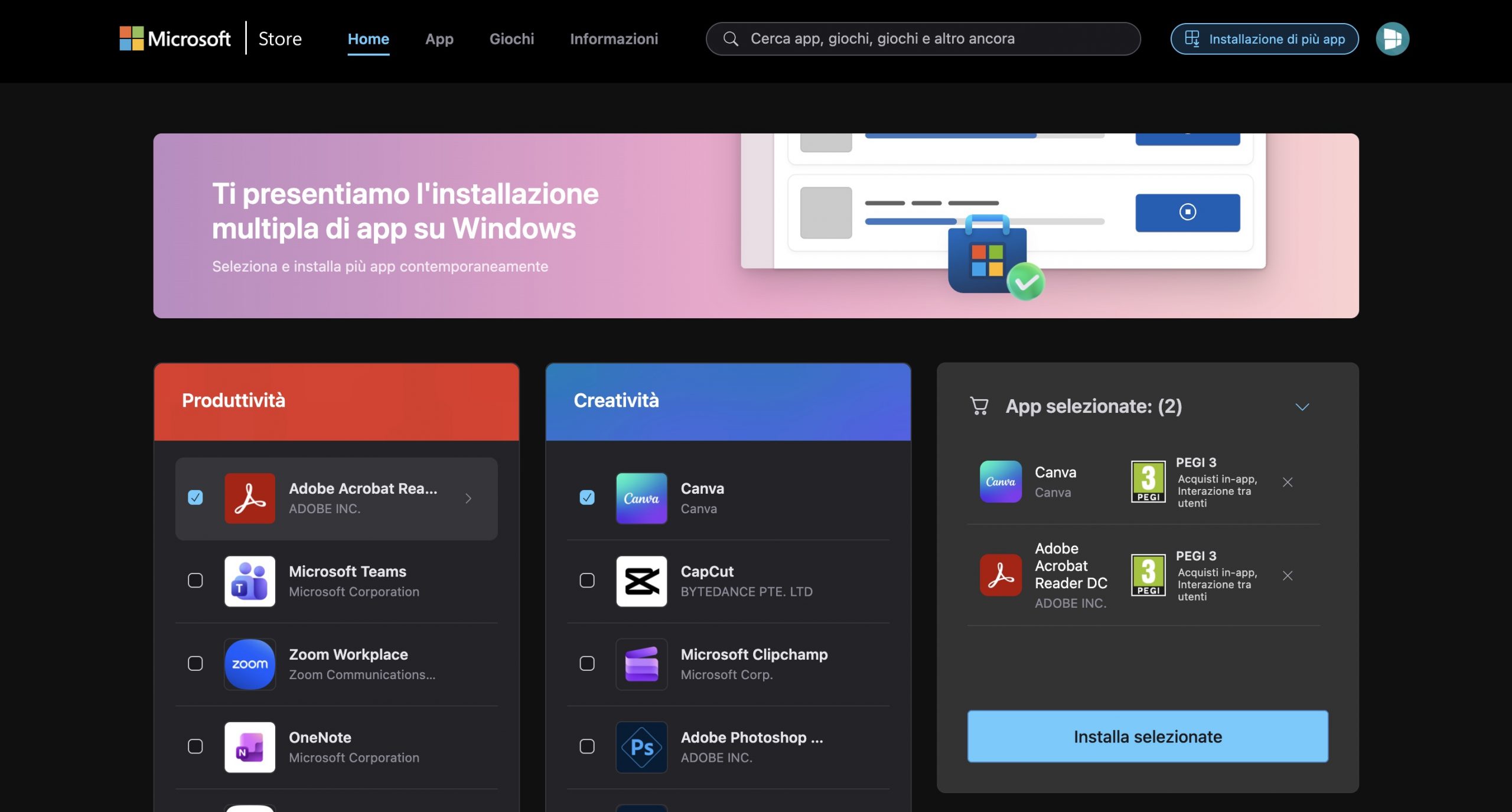 Ora è finalmente possibile effettuare l’installazione multipla di app e programmi del Microsoft Store contemporaneamente.